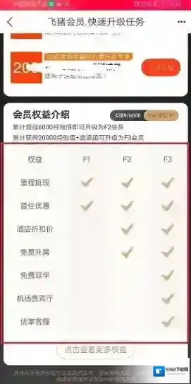 5、我们可以看一下不同等级的飞猪会员享受的权益,会员等级越高,权益越多,如下图所示: