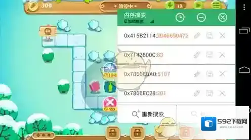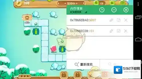 在种上一个箭塔数据由300变成了200,重复数据搜索步骤,这次只剩下了2个地址,一个地址的数值是5007,一个地址是101,就是这两个地址决定了你的金币。其中两个数据要对金币进行校验,只有同时符合加密规律,系统才会认定金币产生了变化。
