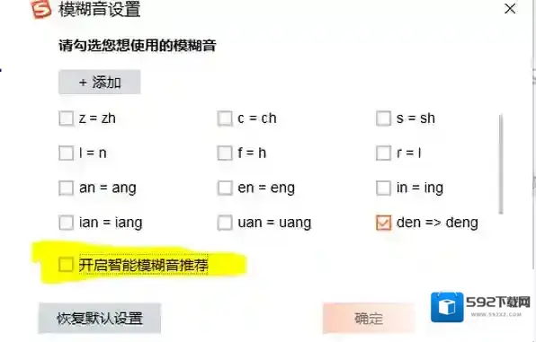 4、然后点击方框里的对勾,就可以取消勾选,这样就关掉了智能模糊音推荐了。