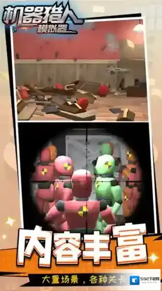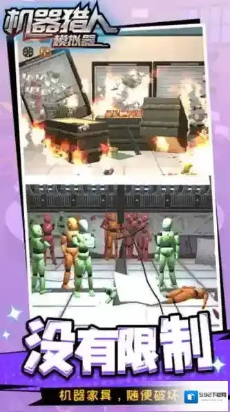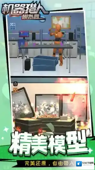 机器猎人模拟是一款开放世界机械破坏解压,玩家操控钩索、龙卷风发生器等脑洞武器拆解巨型机器人,体验物理引擎驱动的无厘头破坏与自由探索乐趣,从日常用品到高科技装备,无数可互动的对象让破坏变得更加有趣且令人满足,无论是在办公室还是废弃工厂。