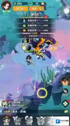 1、进入游戏后点击屏幕可以加快主角攻击,击败怪物可以获得灵力和各种奖励。