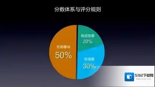 鲁大师手机VR评测分为三部分,分别是性能支持、视觉体验、传感器,在总成绩里的比重分别占50%、20%、30%。