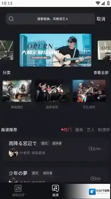 9、曲谱功能、海量曲谱,有声曲谱同步播放,和弦查询,可定制下载我的曲谱集。