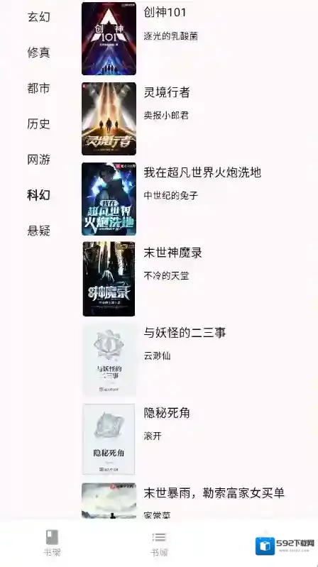2、“书城”页面包含了很多的小说资源,玄幻、悬疑以及都市等都有。