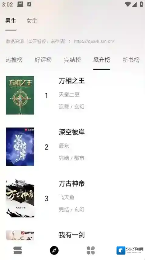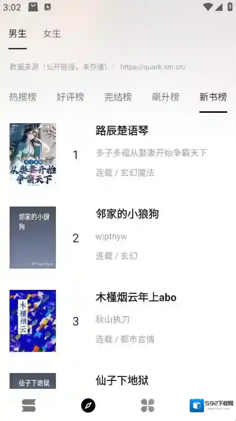 2、首页页面汇集了很多的小说资源,保护拿了热搜榜、好评榜以及完结榜等。