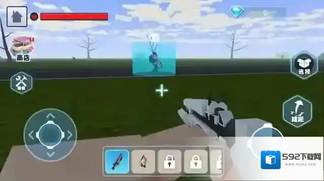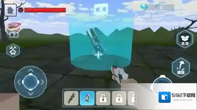 2、看到箭头指向的道具(武器箱),移动角色靠近,自动拾取新武器,切换使用,提升战斗能力。