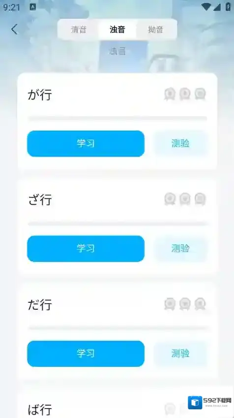 3、有清音、浊音、拗音类型,点击“学习”。