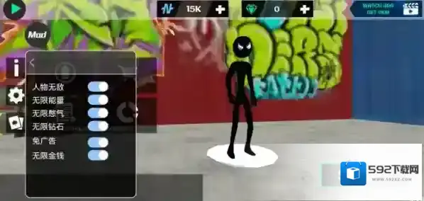 火柴人绳索英雄2内置mod菜单,该版本为内置菜单版本,提供了丰富的菜单功能选项,如人物不会死、大量子弹、大量能量、大量金钱等,玩家可以根据实际情况来开启。游戏中玩家可以操作自己的火柴人战士在城镇中自由行动,游戏拥有超大的地图且自由的玩法,体验出色。
