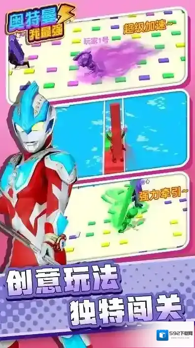 奥特曼我最强是一款以经典奥特曼角色为主题的创意跑酷作品,玩家将置身于充满科幻感的未来城市跑道,化身为光之巨人开启魔性跑酷冒险,可自由挑选迪迦、赛罗等多个奥特曼皮肤,操控角色在奔跑过程中收集同色木板,通过搭建桥梁跨越深渊、避开陷阱,在快节奏的挑战中感受流畅的动作设计与色彩鲜明的场景切换。