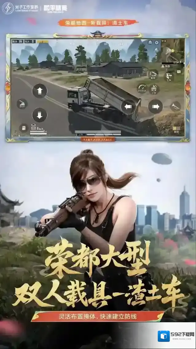 ① 渣土车:目前为止最大的载具,驾驶体验也和现实生活贴近,渣土车自带车斗土,可以通过卸土来即时制造掩体;