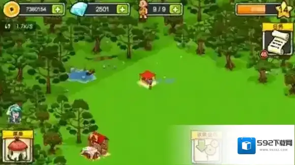 在原始森林中,玩家只需点击想要扩建的地方,并使用少数饲养员即可完成庄园扩建。