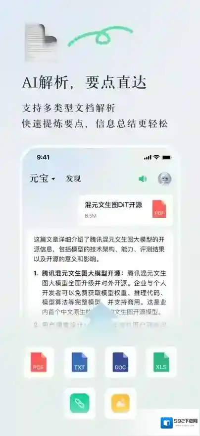 用户可以直接上传文件,元宝将快速为您输出关键要点,让信息总结变得更为简单高效。