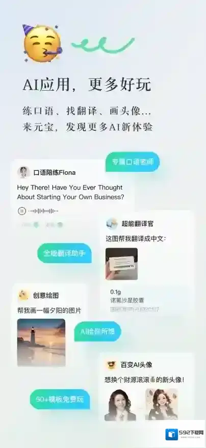 除了作为效率工具外,元宝还与众多创作者联手,为用户提供了更多有趣且实用的AI应用,让您在享受科技带来的便捷之余,也能体验到更多的乐趣与惊喜。
