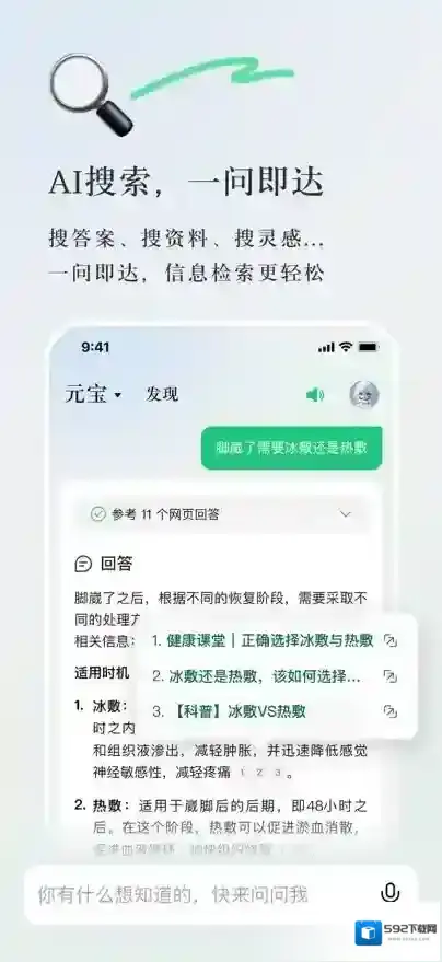 无论是搜索答案、查找资料还是寻求灵感,只需一问,元宝便能迅速回应,让您的信息搜索变得更加轻松便捷。