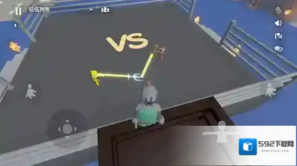 2、在对战擂台,拾取武器(如叉子)攻击对手,善用物理碰撞,把敌人打下擂台,注意自身平衡别失足。