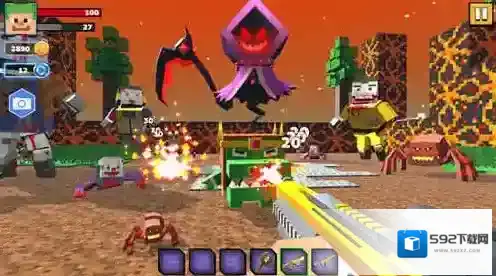 2、皮肤收集乐趣:通过成就系统解锁30+武器皮肤,“像素情人节”限定皮肤射击时会飘落爱心特效,“复古电视”皮肤使画面呈现雪花噪点风格,满足收集癖与个性化需求。