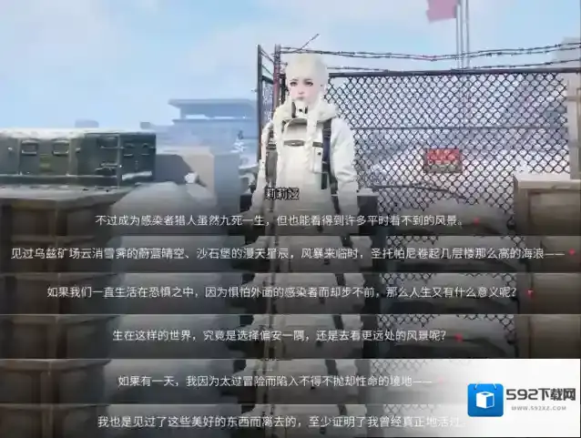 于是我又去找了烧水工阿瓦库姆,还有莉莉娅,莉莉娅说阿廖沙被叫去帮忙撑皮筋了,说是为了多挣点劳务券。从她口中得知,一开始阿廖沙本想跟着格里戈里当厨师,自从她借给阿廖沙《小英雄谢苗》的绘本后,阿廖沙便对成为感染者猎人情绪高涨。莉莉娅说,她支持阿廖沙的决定,但是也很理解塔季扬娜大婶的伤痛。她叫我带上她的狗狗去帮忙,把阿廖沙换回来。