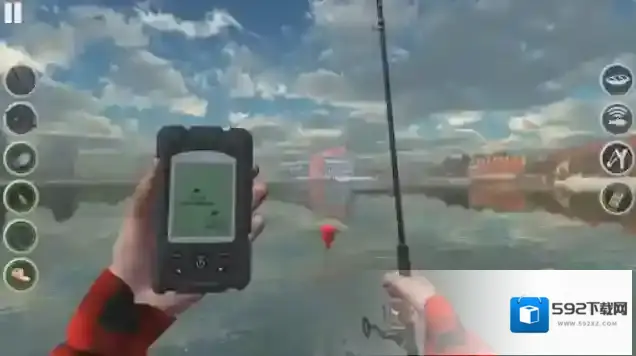 3、拖动右侧的虚拟摇杆,可以选择垂钓的位置。