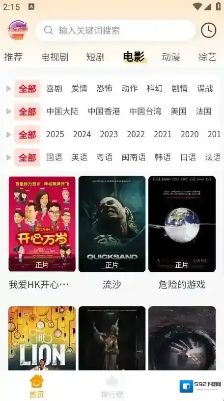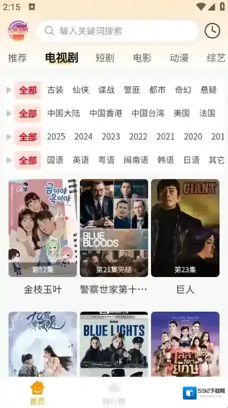 2、首页页面汇集了很多的影视资源类型,电视剧、电影以及综艺等类型都有。