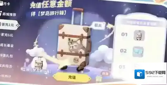 1、首充,首充任意金额即可获得载具梦岛旅行箱,帮助玩家前期跑图。