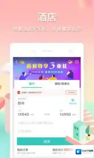 2、国内及港澳4万余家酒店预订,提供海量酒店房型照片以及真实住客的点评,入住发点评赢奖金,手机预订返得更多;
