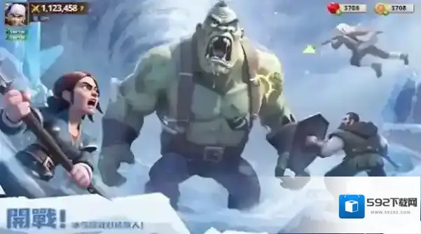 1、点击開戰,进入冰雪战场,操控角色(拿武器),配合队友(绿巨人、弓箭手)攻击敌人。