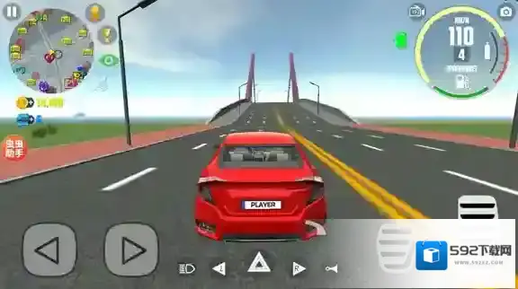 3、正式进入游戏后可以驾驶车辆来自由探索城市,左边控制转向,右边控制前进和后退。