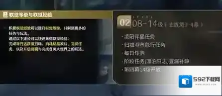 主线第三幕结束后,第四幕将在14级开启,此时会开始卡主线等级,不过,同时会解锁许多新任务,优先完成将凌阳:伴星任务和危行任务:归墟港市(无需跑图,自动传送至任务地点),这两个任务完成后,再领取漂泊日志中的经验,基本可稳定达到14级,此期间,仍无需过多考虑其他支线任务,经验已足够充足。