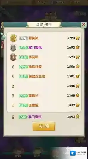 3、关卡星级评定:三星完胜(指定回合内胜利且无弟子阵亡)、二星胜利(指定回合内胜利且阵亡弟子少于1名)、一星险胜(指定回合内胜利,阵亡弟子多于1名)。星数可在江湖界面内查看排行,星数越高排名越高;星数相同时,先达到的排名更高。