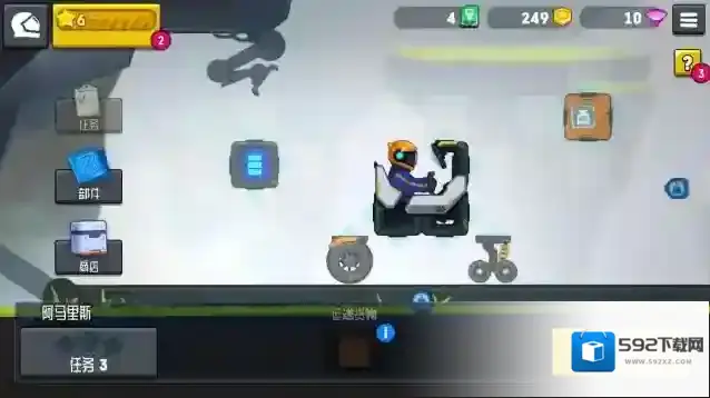 5、在主界面点击部件可以自由组装车辆,车辆部件可以通过开启商店里的补给箱来获得。