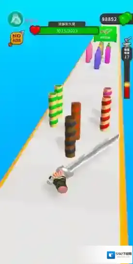 3、在关卡挑战中,玩家需要挥舞自己的武器去斩断巨石、树木和其他障碍物,每次斩断物品就能获得奖励。