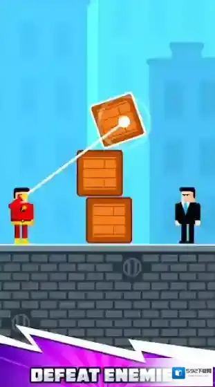 2、开始关卡挑战后,根据英雄的超能力来进行操作,例如这位就可以通过拖动屏幕来划线,从而发射武器。