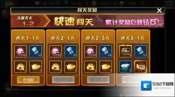5、冲关豪礼,大量升级材料、钻石直接赠送。