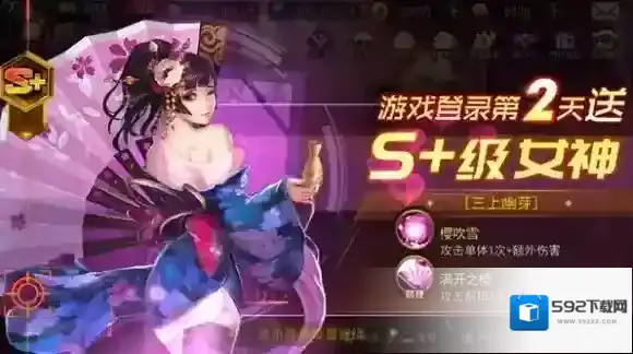 1、游戏登录第二天送超强S+女神。