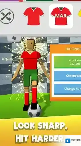 3、游戏内还有服装、角色和足球皮肤可以自由切换,搭配出最个性的角色去踢球,享受最棒的踢球乐趣。